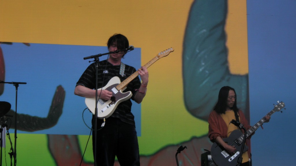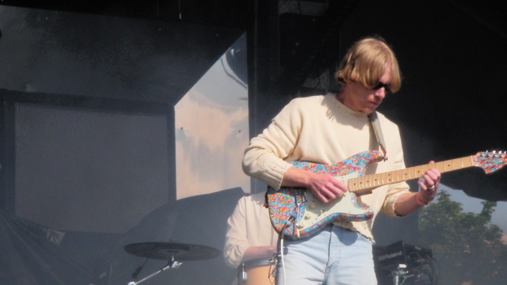 I started Friday with a long wait in the merch line to secure my holy grail from the Sinister Grift tour – an embroidered Panda Bear hat mimicking the PlayStation logo. Exploring the festival grounds led us to the Skullcandy tent, winning wristbands and sunglasses through their pachinko setup. After dropping off our spoils of war, I split time between Perfume Genius and Hovvdy (only one band should be allowed the “vv” = “w” imo). Momma’s Welcome to My Blue Sky sounded great on the Desert Stage – “I Want You (Fever)” and “Ohio All The Time” were electric listens while relaxing underneath the trees at Desert Stage.